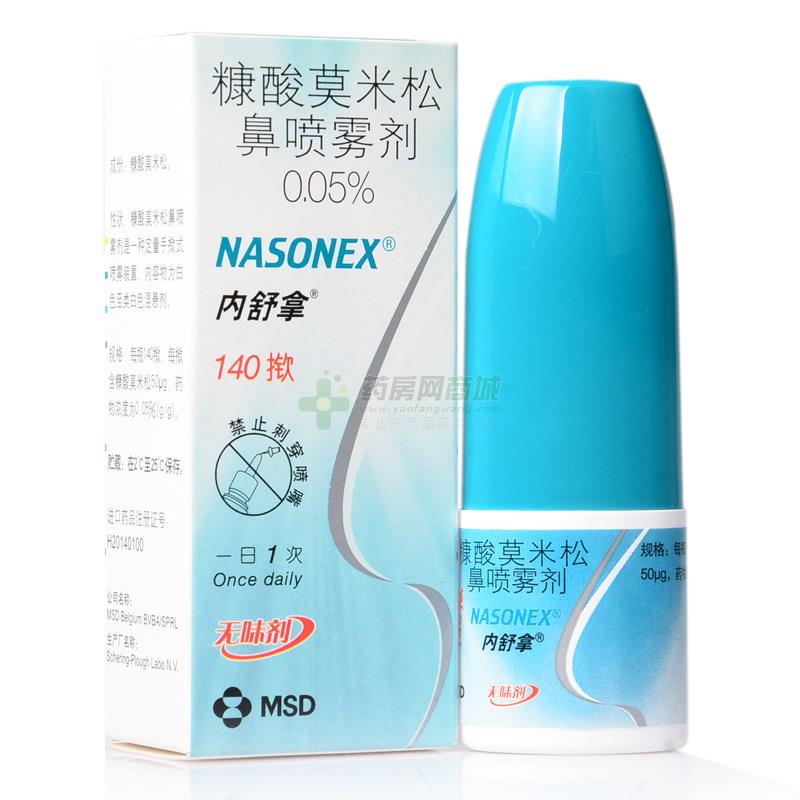 季节过敏性或常年性鼻炎通常先手揿喷雾器6-7次作为启动,直至看到均匀的喷雾,然后鼻腔给药,每揿喷出糠酸莫米松混悬液约100mg,内含糠酸莫米松一水合物,相当于糠酸莫米松50μg,如果喷雾器停用14日或14日以上,则在下一次应用时应重新启动。在每次用药前充分振摇容器。成人(包括老年患者)和青年:用于预防和治疗的常用推荐量为每侧鼻孔2揿(每揿为50μg),一日1次(总量为200μg),一旦症状被控制后,剂量可减至每侧鼻孔1揿(总量100μg),即能维持疗效。如果症状未被有效控制,可增加剂量至每侧鼻孔4揿的最大每日剂量,一日1次(总量400μg),在症状控制后减小剂量。在首次给药后12小时即能产生明显的临床效果。3至11岁儿童:常用推荐量为每侧鼻孔1揿(每揿为50μg),一日1次(总量为100μg)。 |